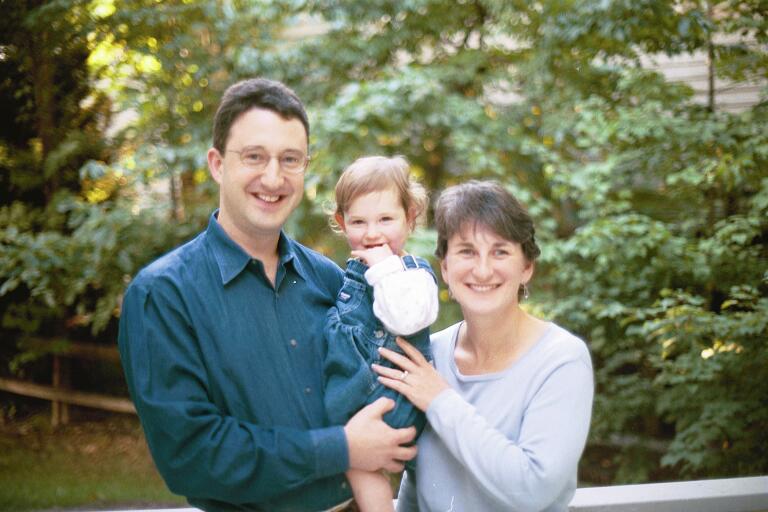 Hannah, Amy and Kevin (October, 2000). Hannah with apples and honey (October, 2000). Amy and Hannah in England (November, 2000).